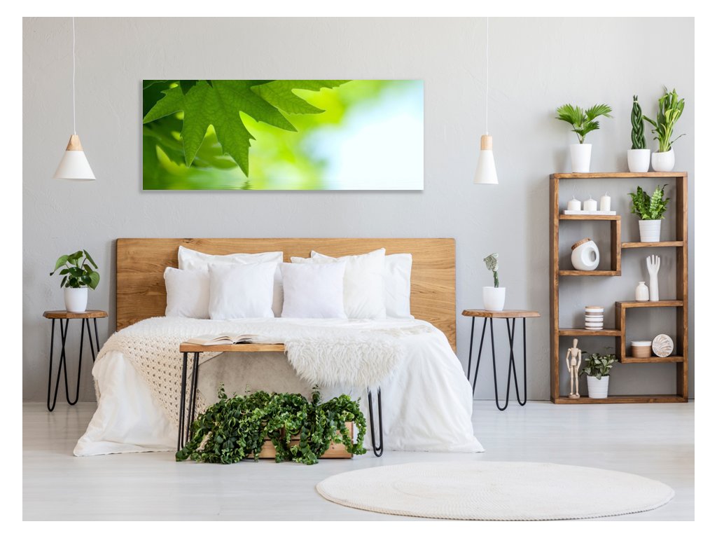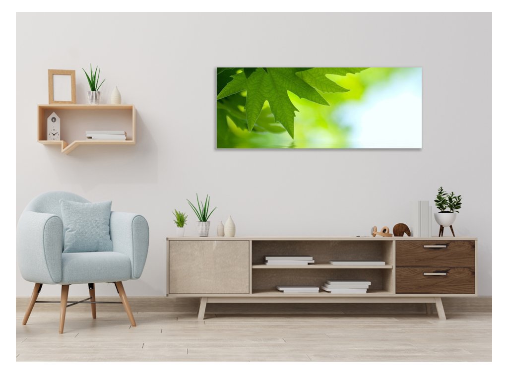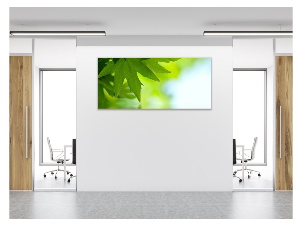 Obraz skleněný větev a listy nad hladinou vody