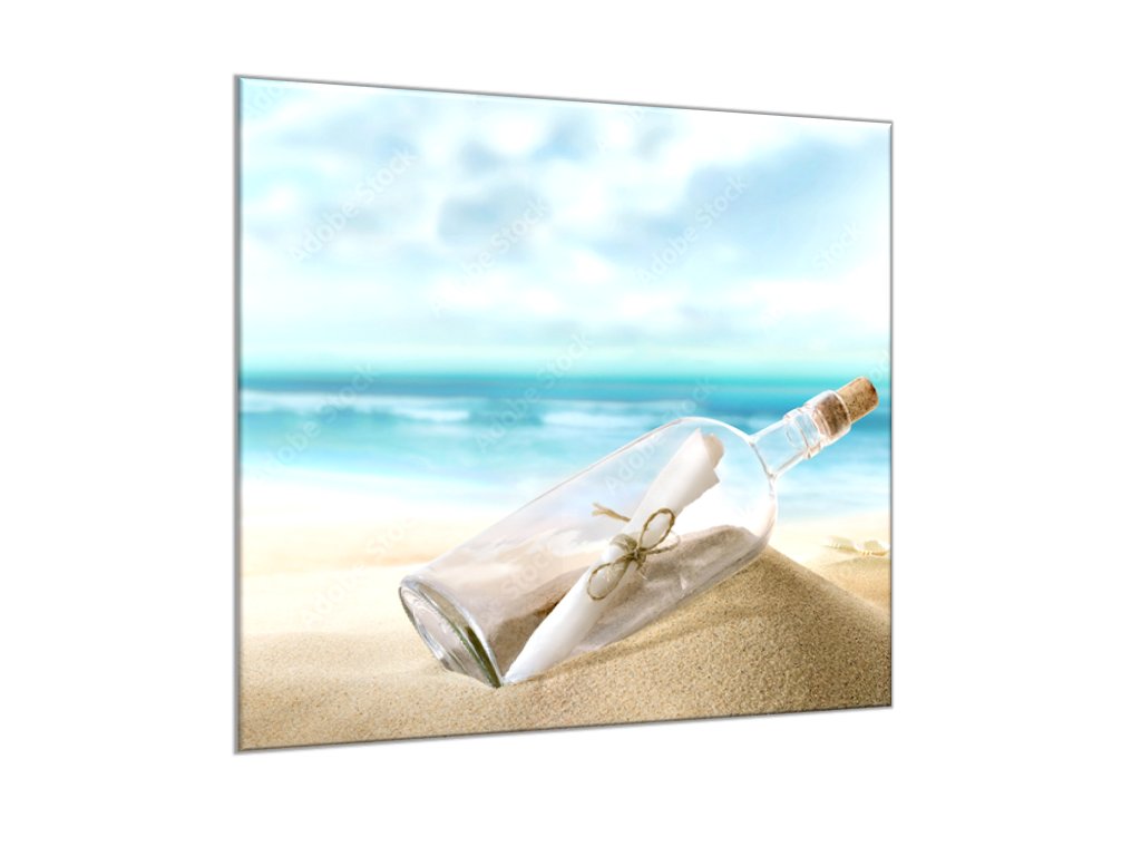 Obraz skleněný vzkaz v lahvi na písečné pláži