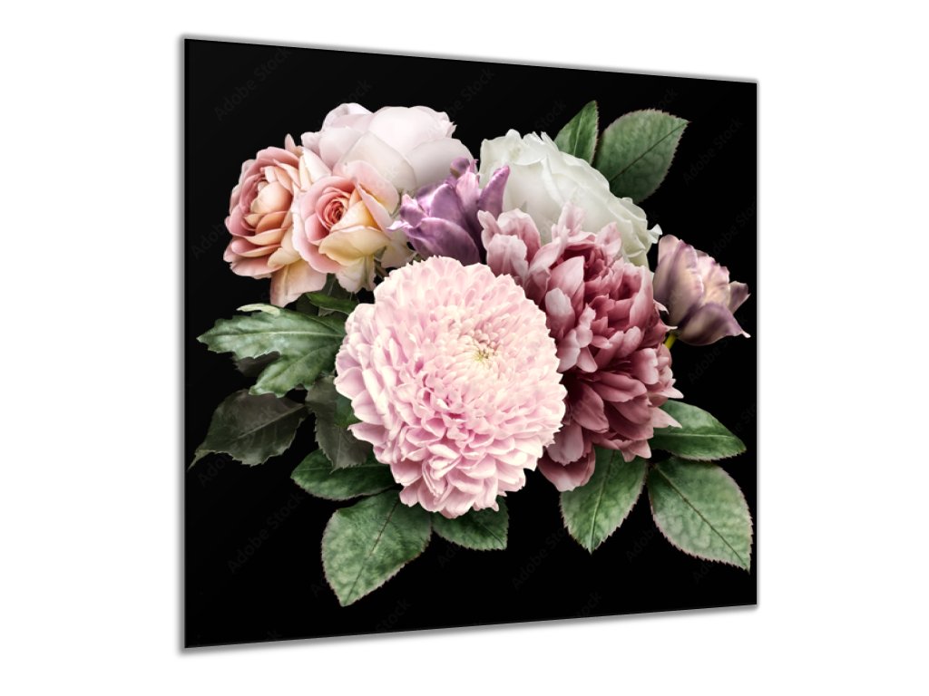Obraz skleněný zahradní kytice růže, pivoňka, chryzantéma