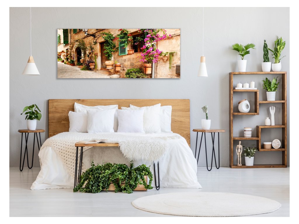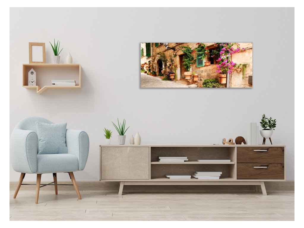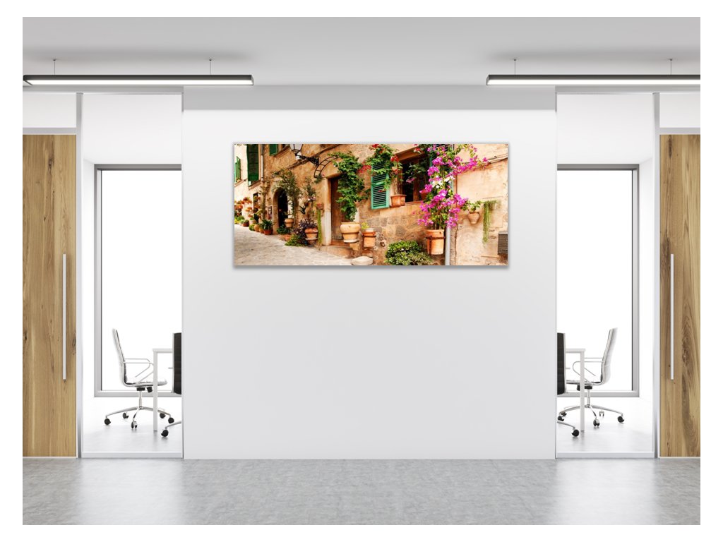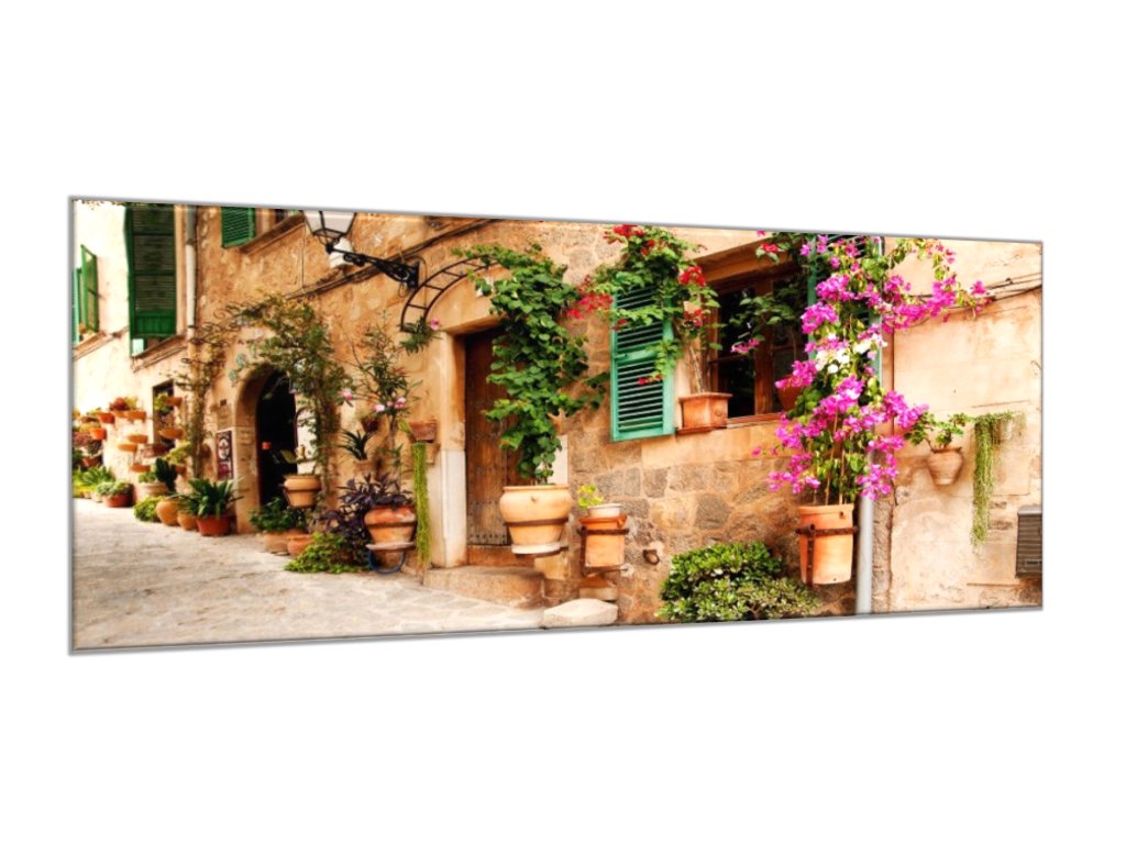 Obraz skleněný zeď domu s květinami