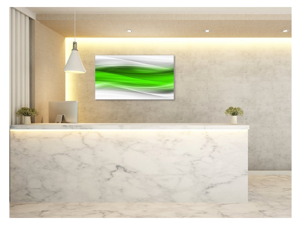 Obraz skleněný zeleno bílá šedá vlna