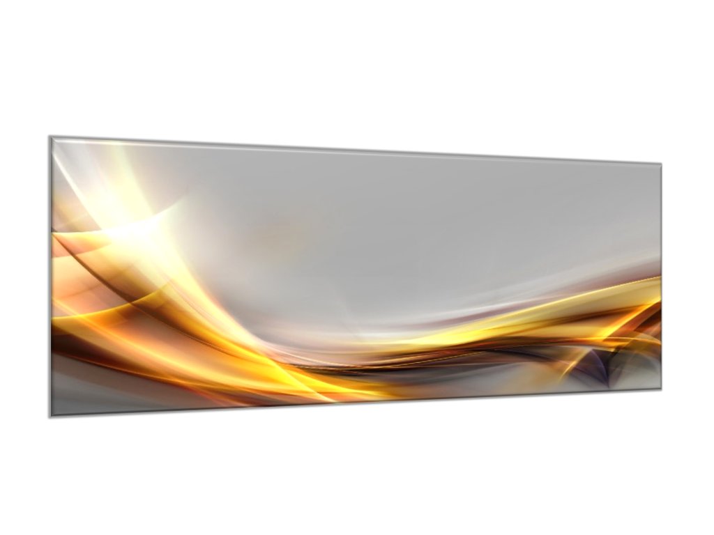 Obraz skleněný žlutá zářivá vlna šedý podklad