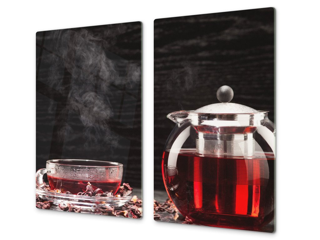 Ochranná deska konvice a šálek s čajem