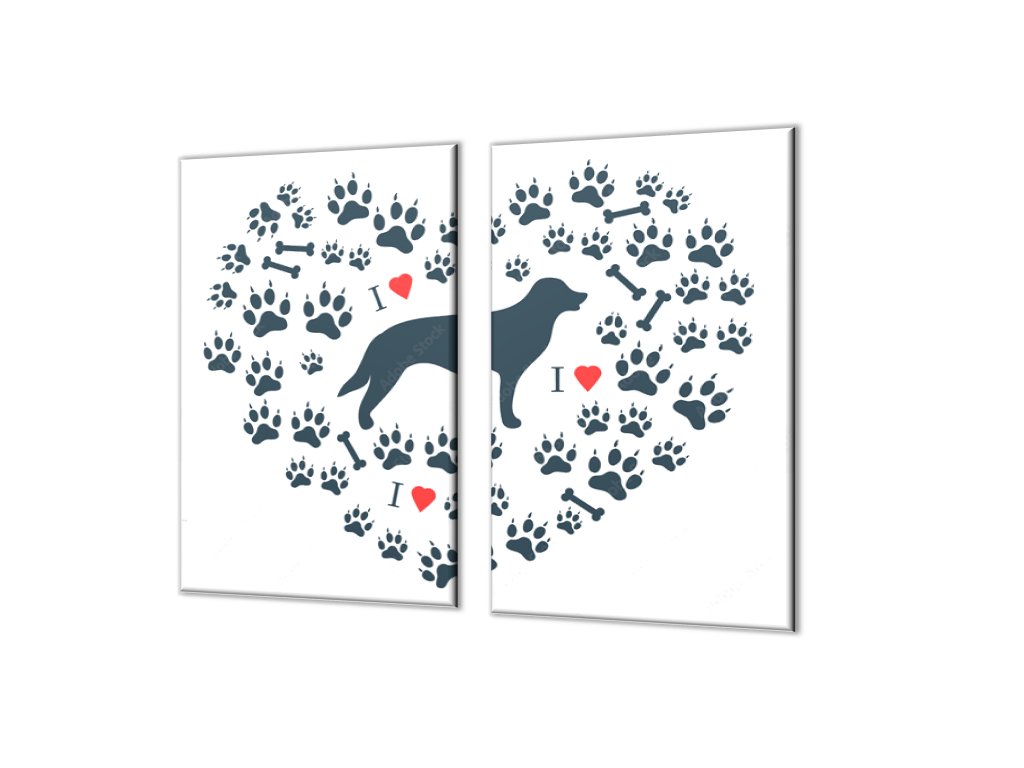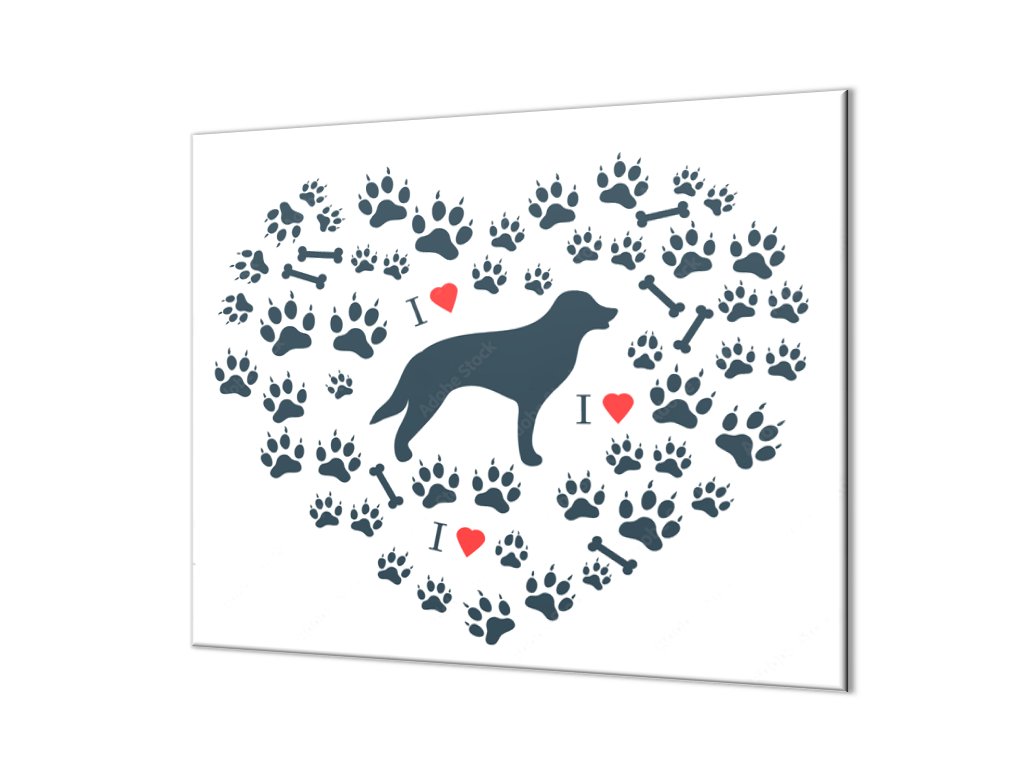 Ochranná deska malovaný pes, srdce a psí tlapky