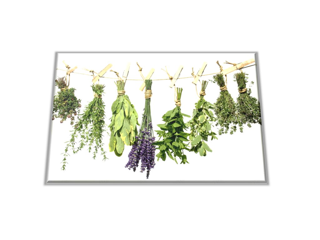 Skleněné prkénko bylinky visící na šňůře a kolíčky