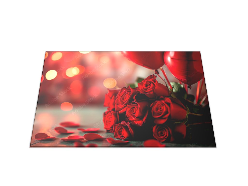 Skleněné prkénko červené růže a balónky