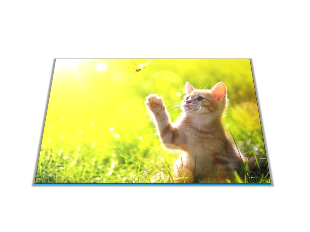 Skleněné prkénko do kuchyně kotě a motýl
