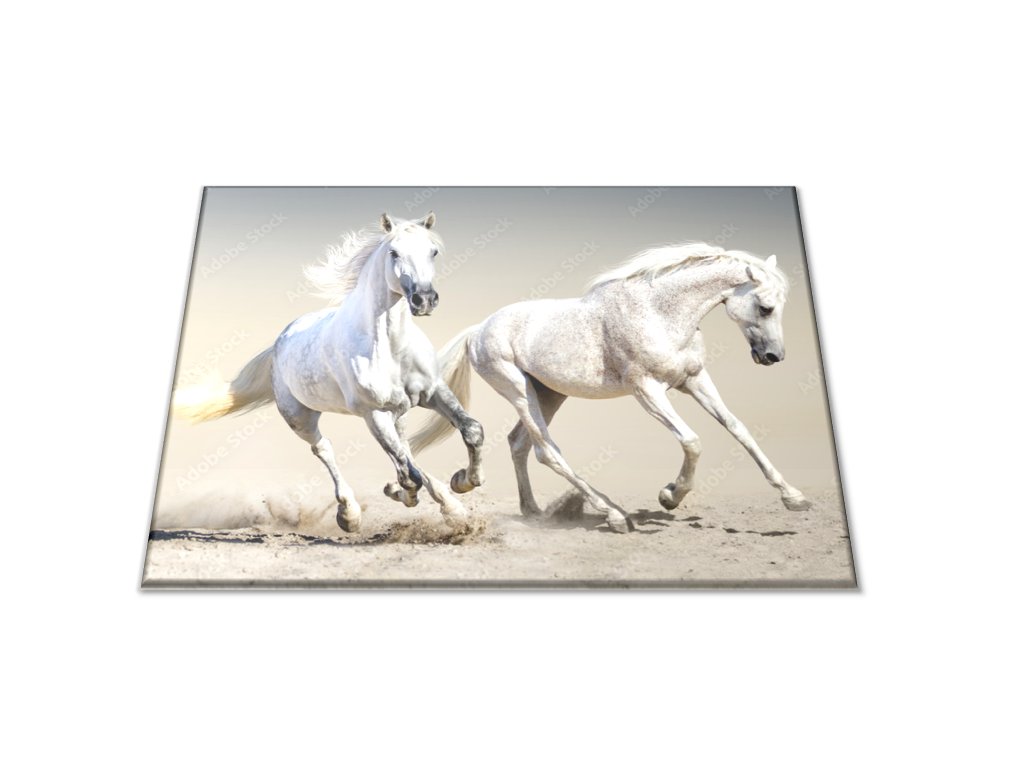 Skleněné prkénko dva běžící bílí koně