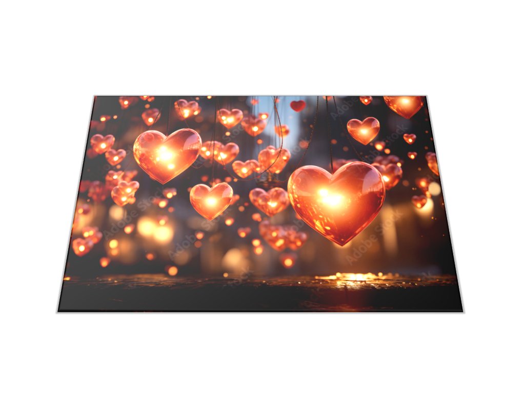 Skleněné prkénko laskavá srdce se světýlkama