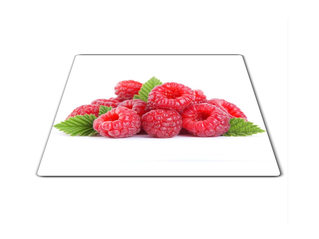 Skleněné prkénko maliny na bílém podkladu