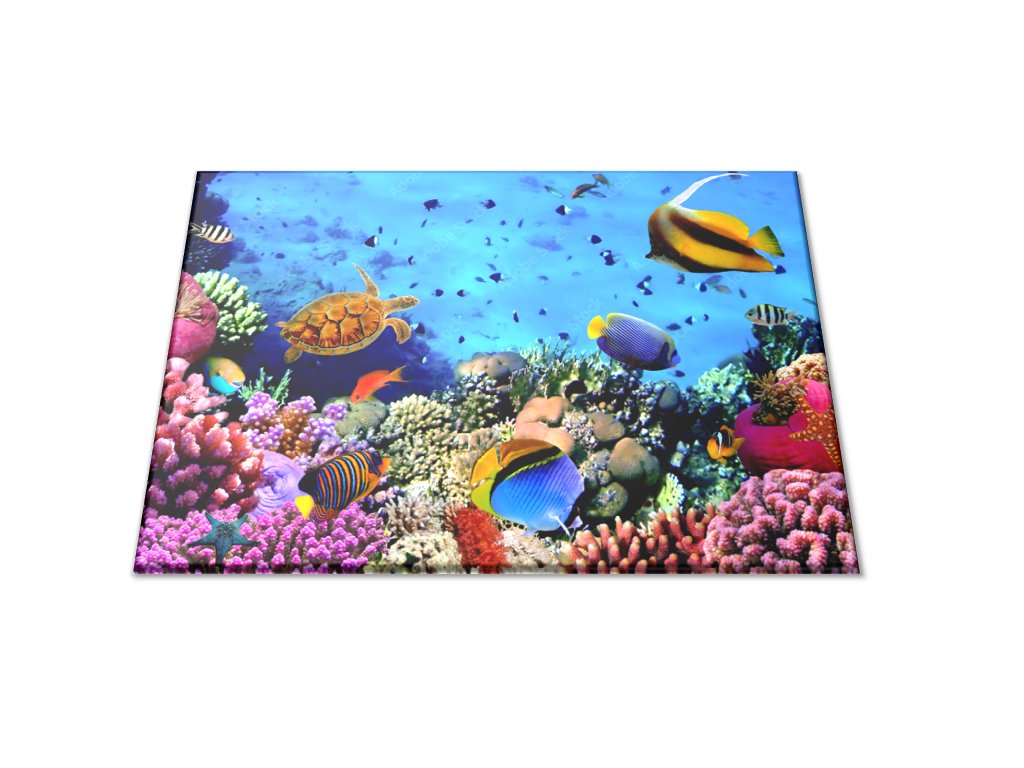 Skleněné prkénko mořský svět rybky, želva, sasanky