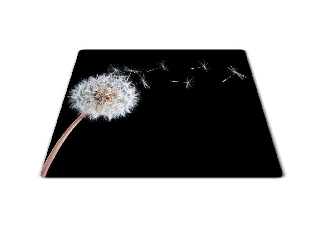 Skleněné prkénko odkvetlá pampeliška na stonku
