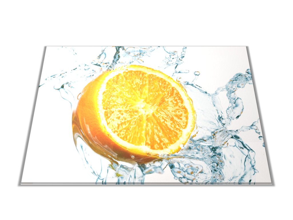 Skleněné prkénko ovoce půl pomeranče ve vodě