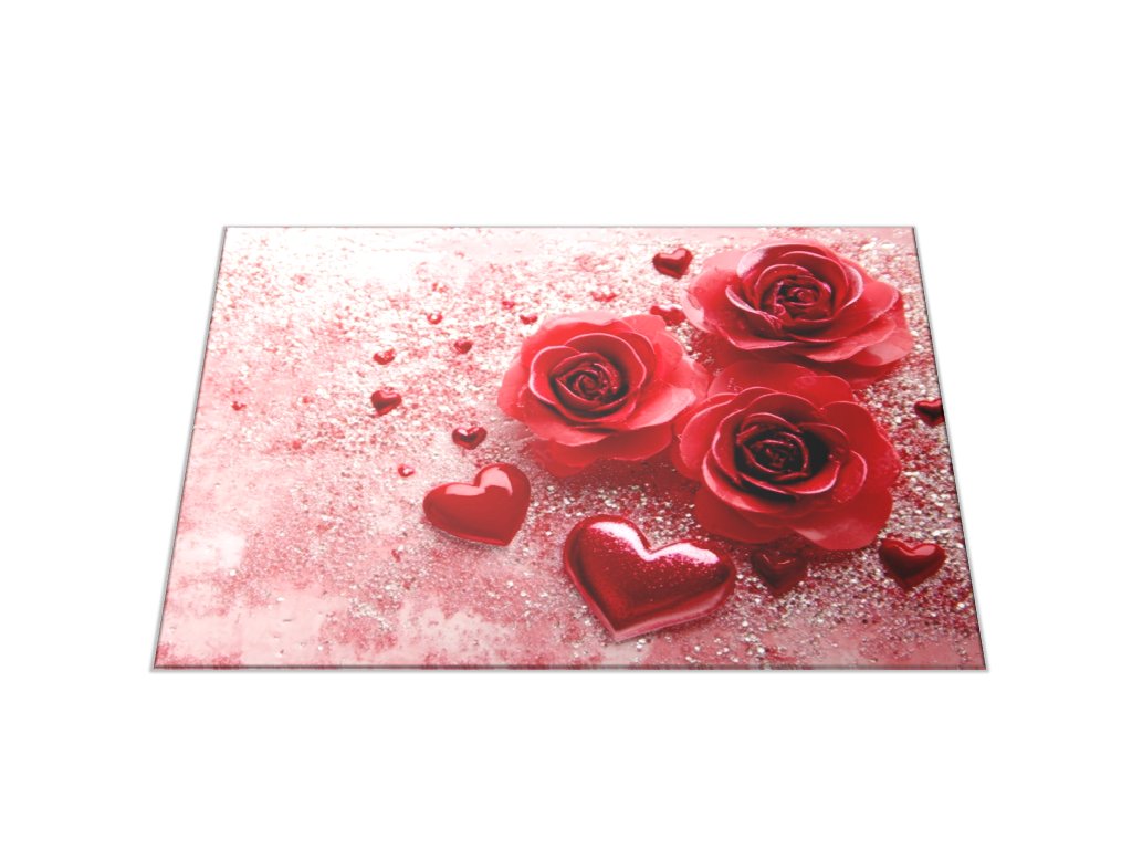 Skleněné prkénko romantické aranžmá růže a srdíčka