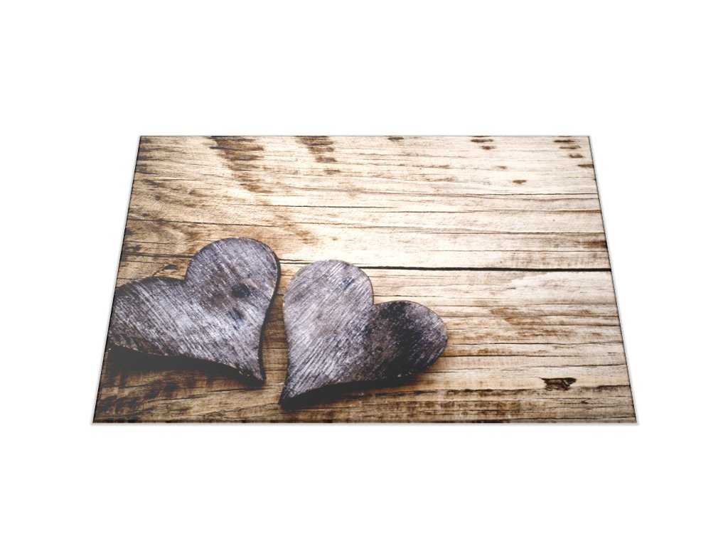 Skleněné prkénko rustikální srdce na dřevěném stole