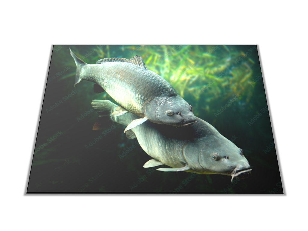 Skleněné prkénko ryba kapři pod hladinou