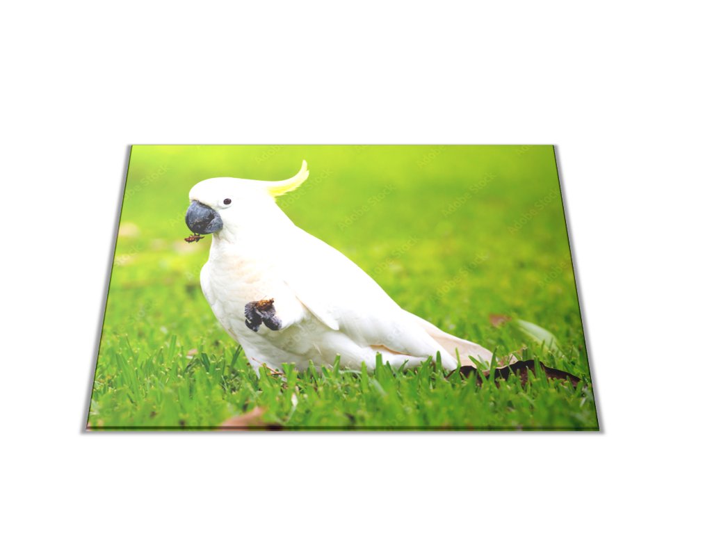 Skleněné prkénko s motivem papoušek kakadu
