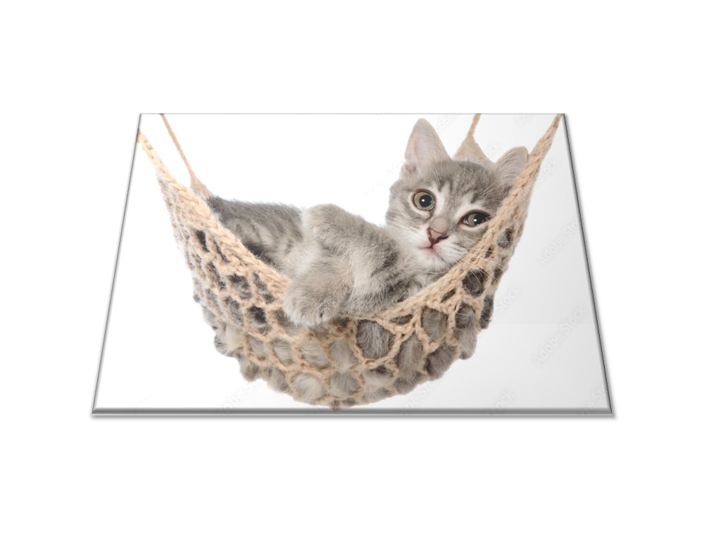 Skleněné prkénko šedé kotě v sítí