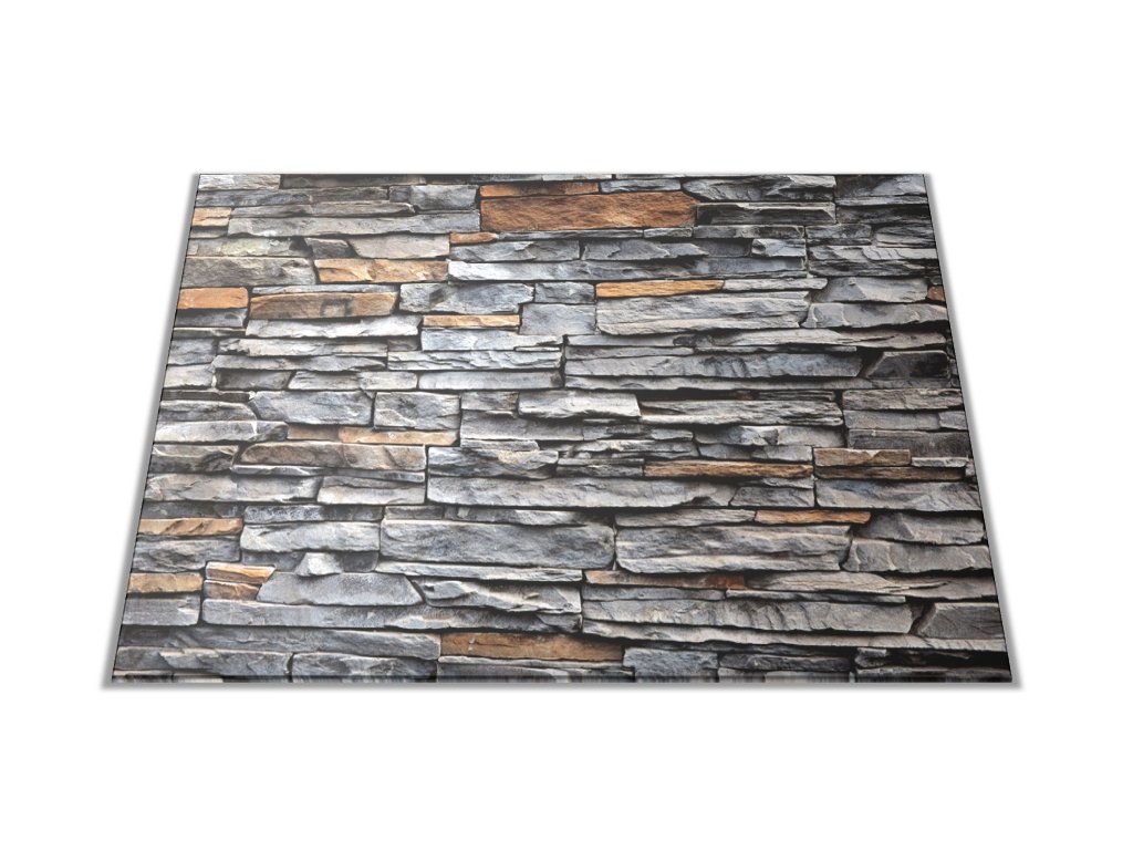 Skleněné prkénko šedo hnědá zeď kámen