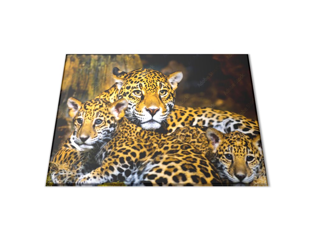 Skleněné prkénko šelma jaguár s mláďaty