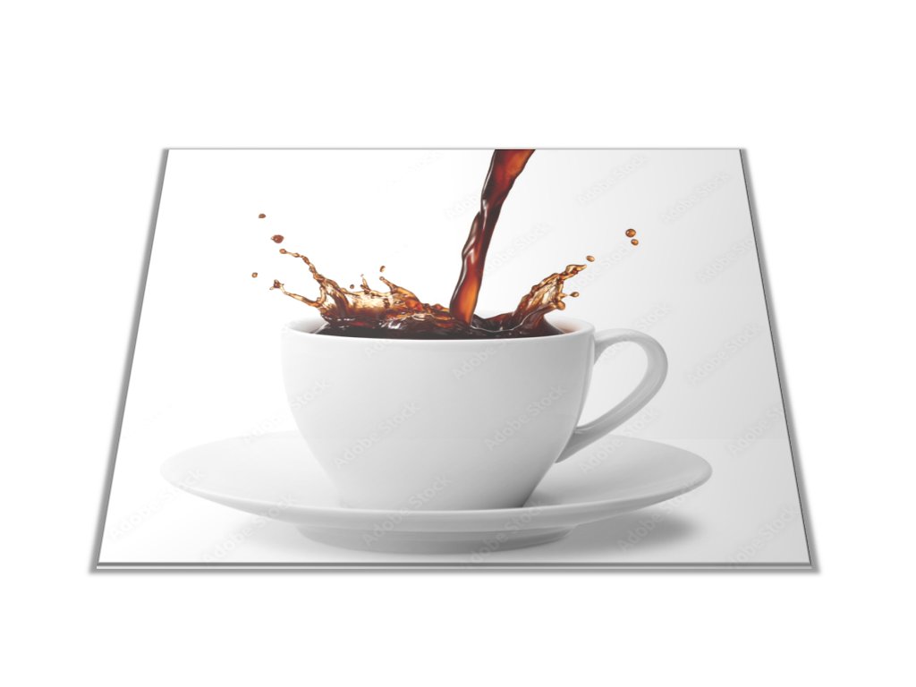 Skleněné prkénko šplouchnutí kávy v bílý šálek