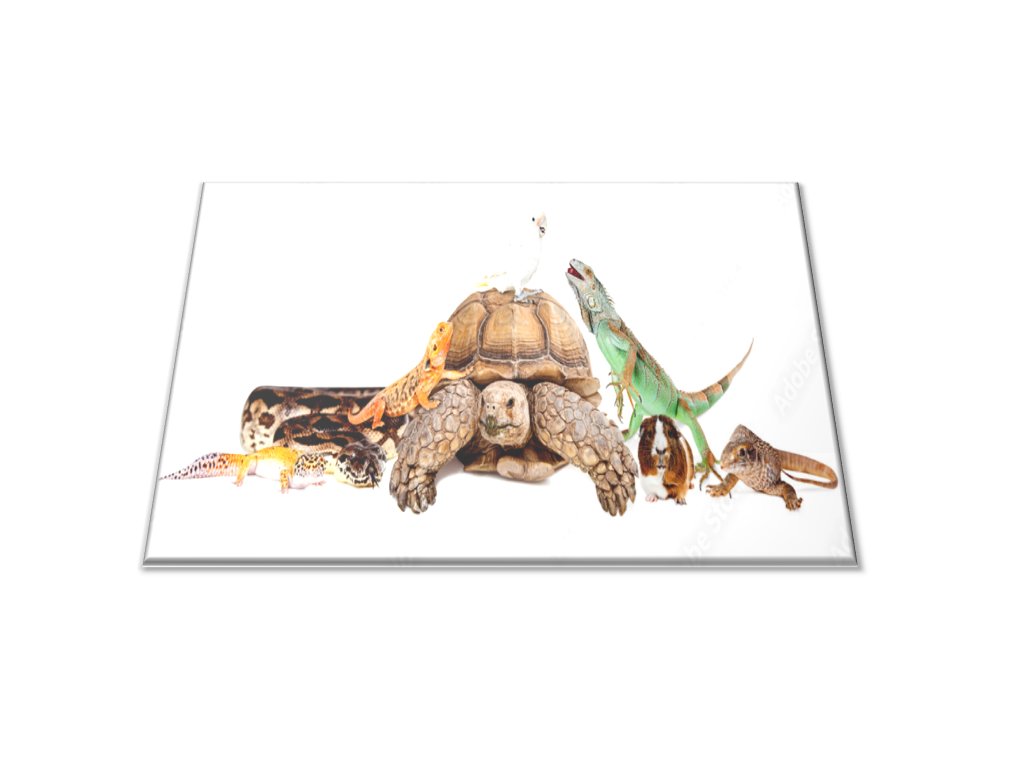 Skleněné prkénko teraristické zvířata a papoušek