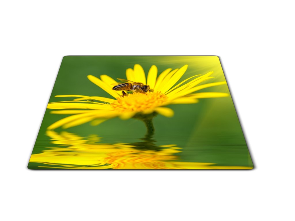 Skleněné prkénko včela na žluté kopretině