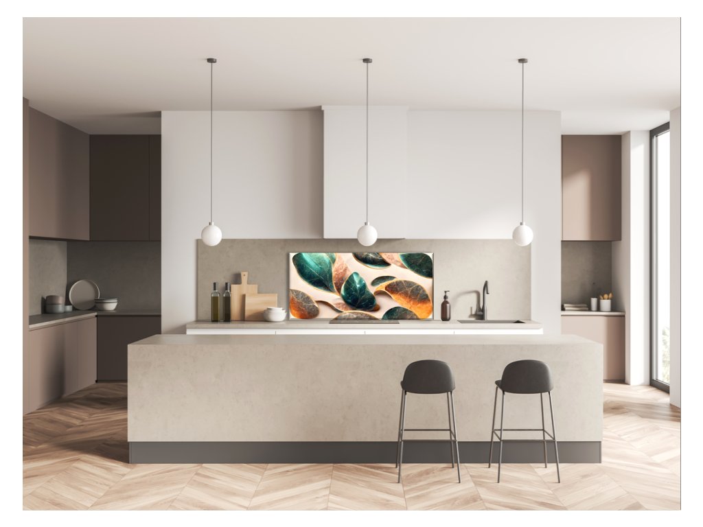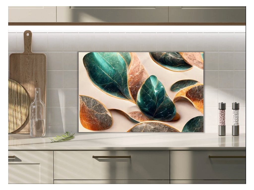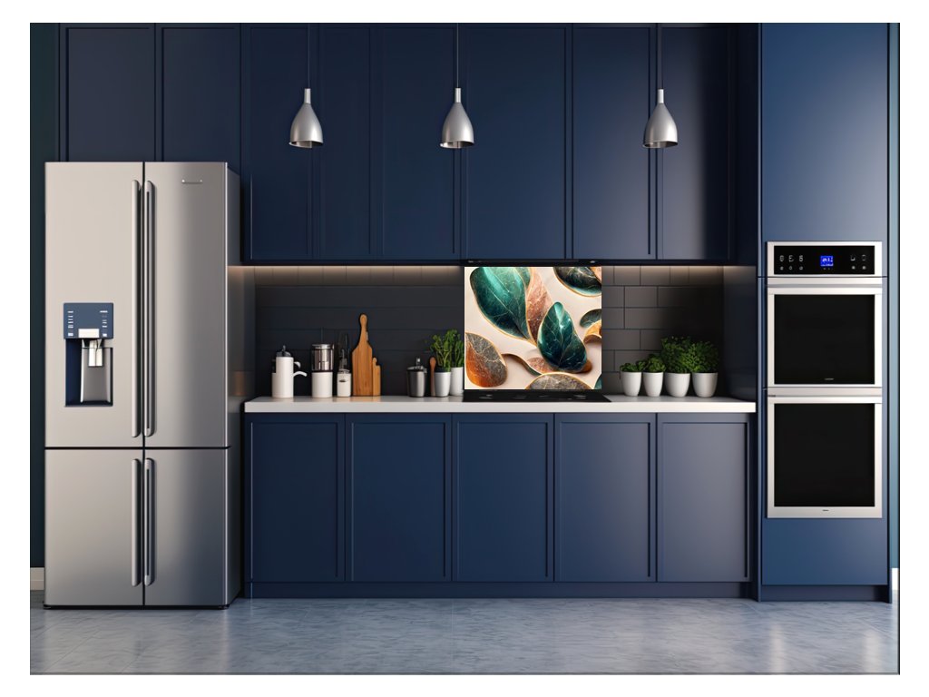 - použití: skleněný panel do kuchyně je vhodný za varné centrum elektrické, indukci i plynové. V případě umístění za plynovou varnou desku doporučujeme minimální vzdálenost 15 cm od hořáků, popř. nepouštět naplno a udržovat plamen pod hrncem hlavně u velkého hořáku. V případě nedodržení instrukcí, může dojít k poškození potisku či barvy výrobku