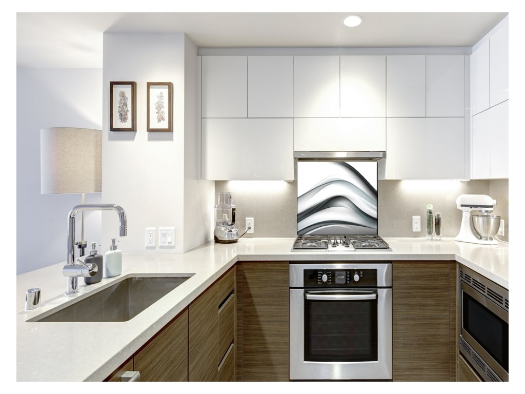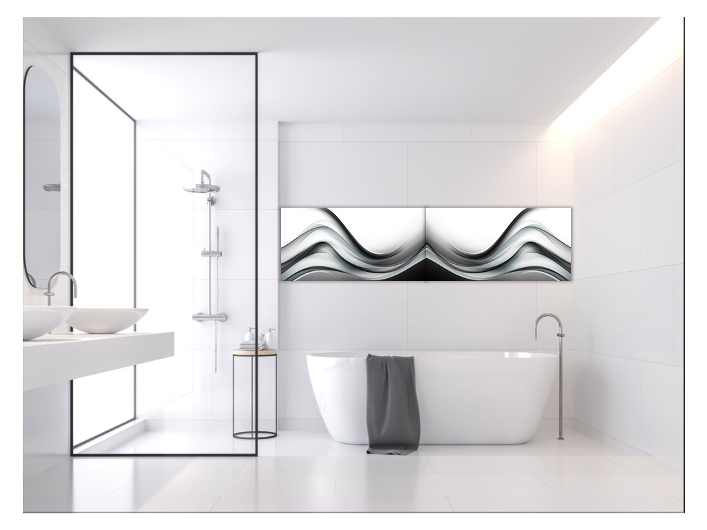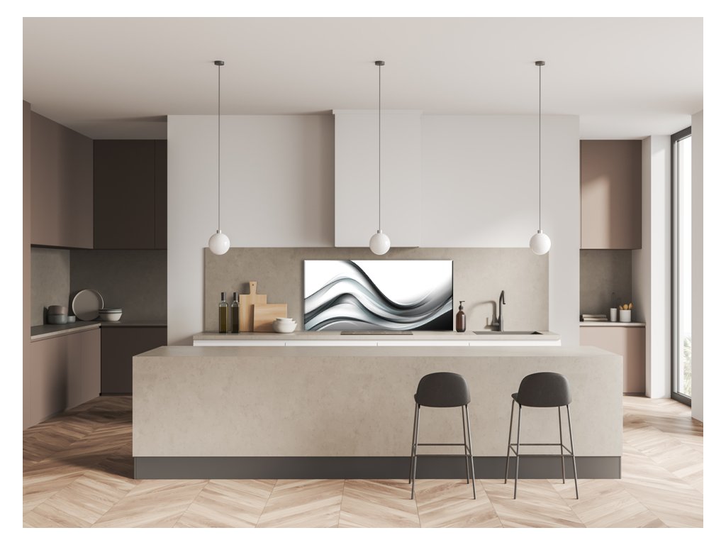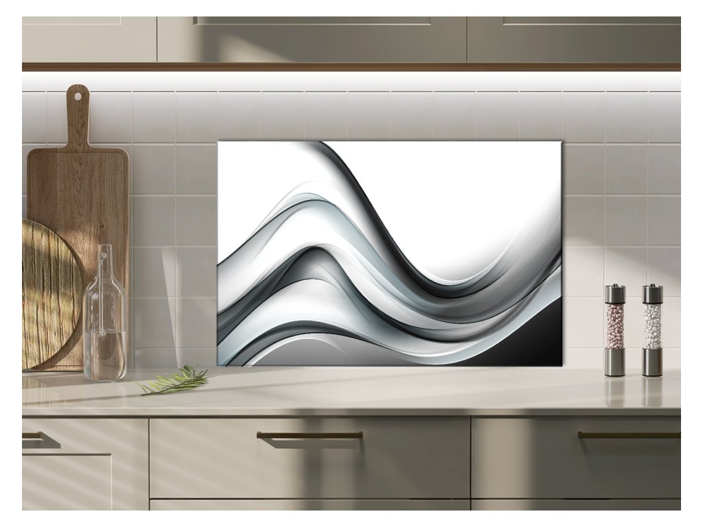 Sklo do kuchyně abstrakt jemně černobílá vlna
