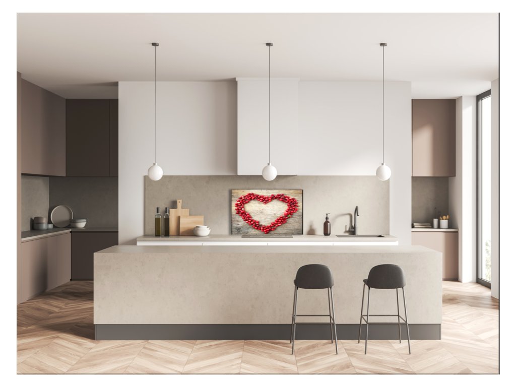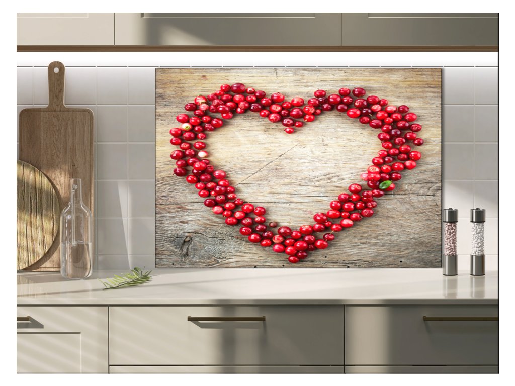 - použití: skleněný panel do kuchyně je vhodný za varné centrum elektrické, indukci i plynové. V případě umístění za plynovou varnou desku doporučujeme minimální vzdálenost 15 cm od hořáků, popř. nepouštět naplno a udržovat plamen pod hrncem hlavně u velkého hořáku. V případě nedodržení instrukcí, může dojít k poškození potisku či barvy výrobku