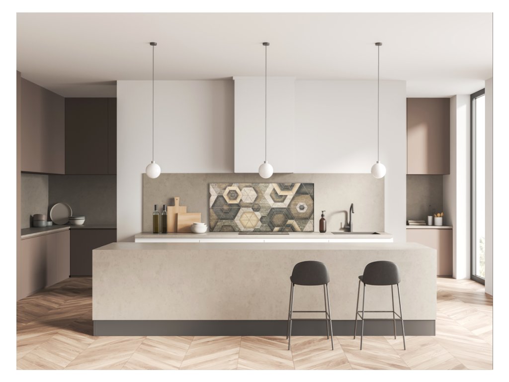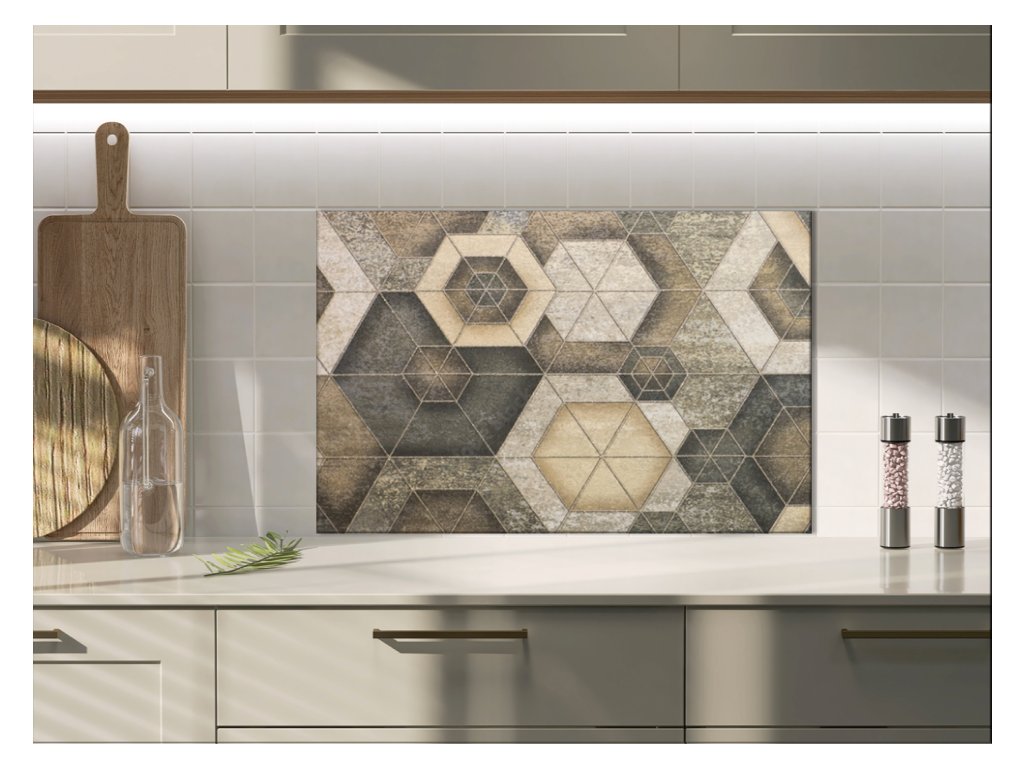 Sklo do kuchyně dlaždice béžové geometrický vzor