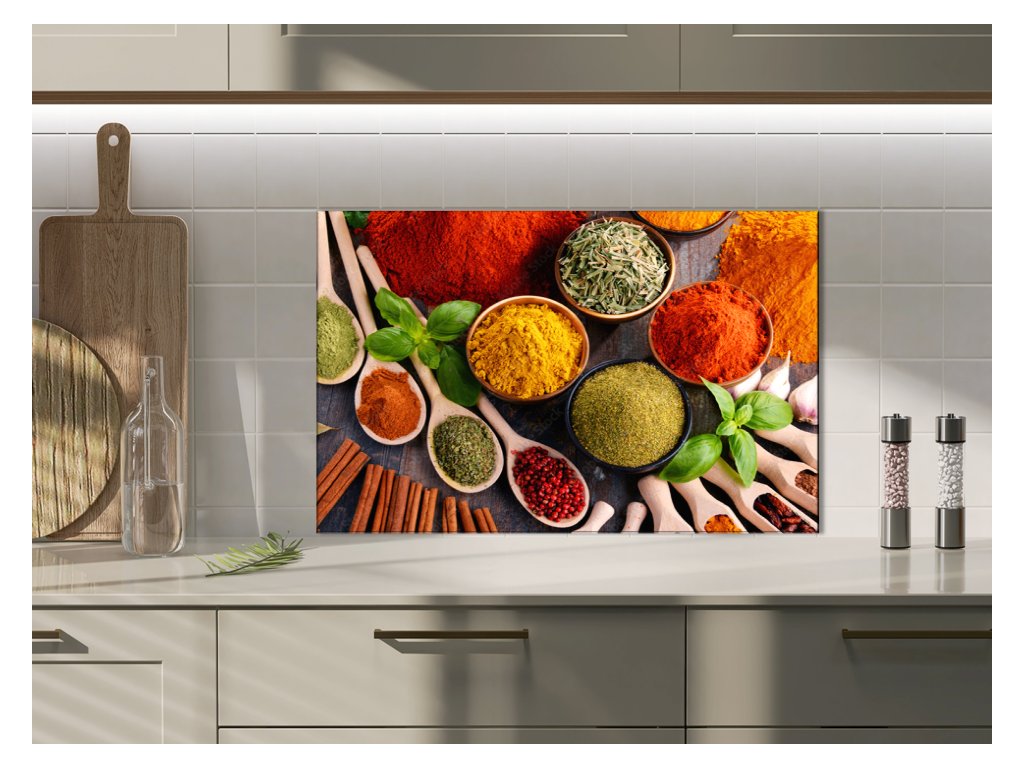 - použití: skleněný panel do kuchyně je vhodný za varné centrum elektrické, indukci i plynové. V případě umístění za plynovou varnou desku doporučujeme minimální vzdálenost 15 cm od hořáků, popř. nepouštět naplno a udržovat plamen pod hrncem hlavně u velkého hořáku. V případě nedodržení instrukcí, může dojít k poškození potisku či barvy výrobku