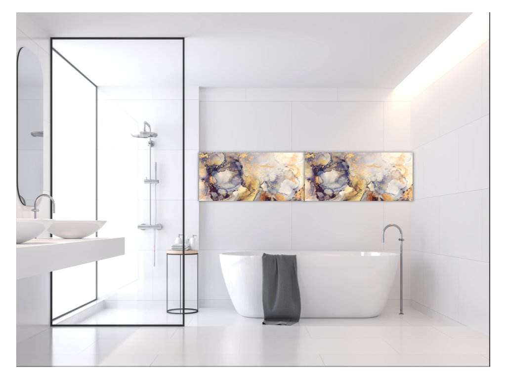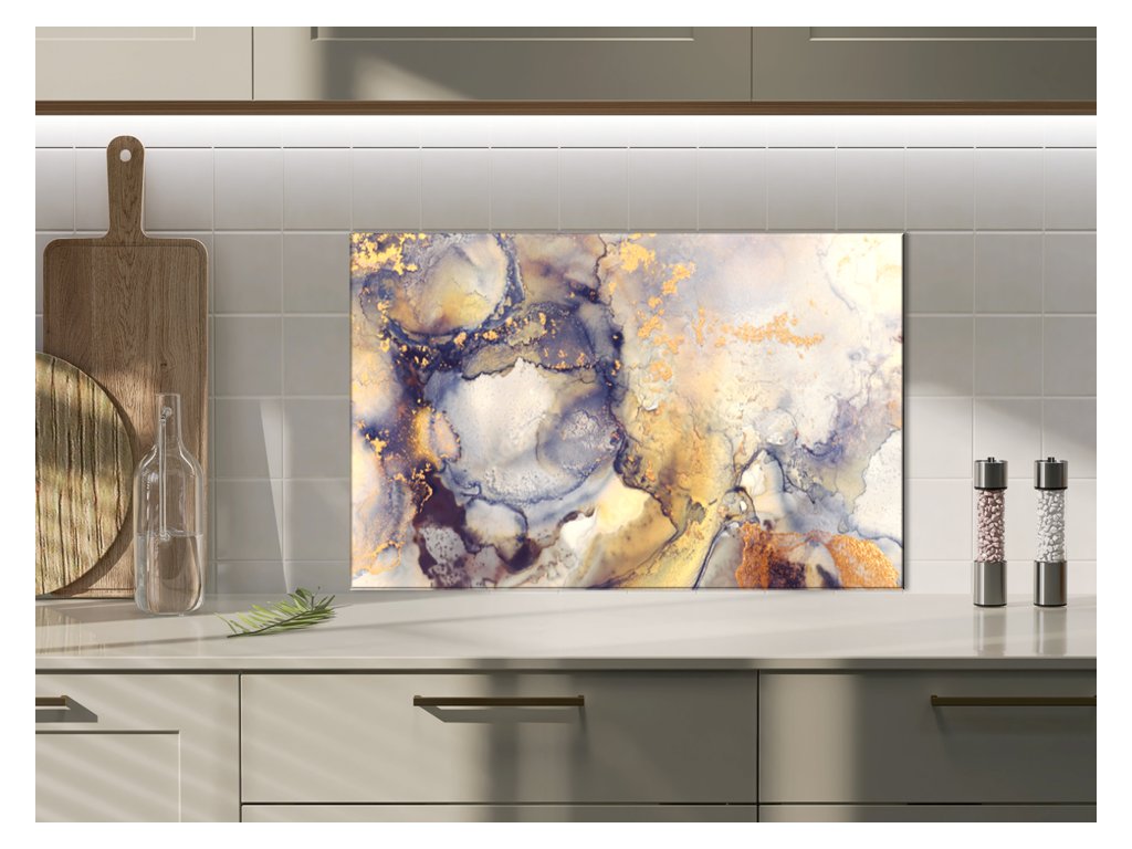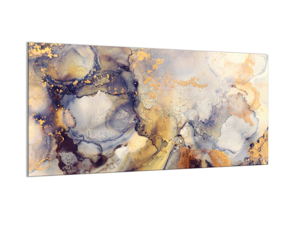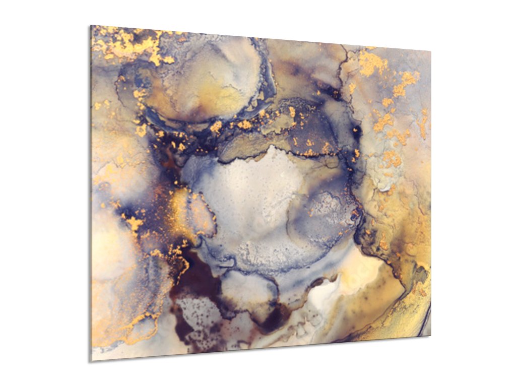 Sklo do kuchyně malba alkoholovým inkoustem šedo zlatá