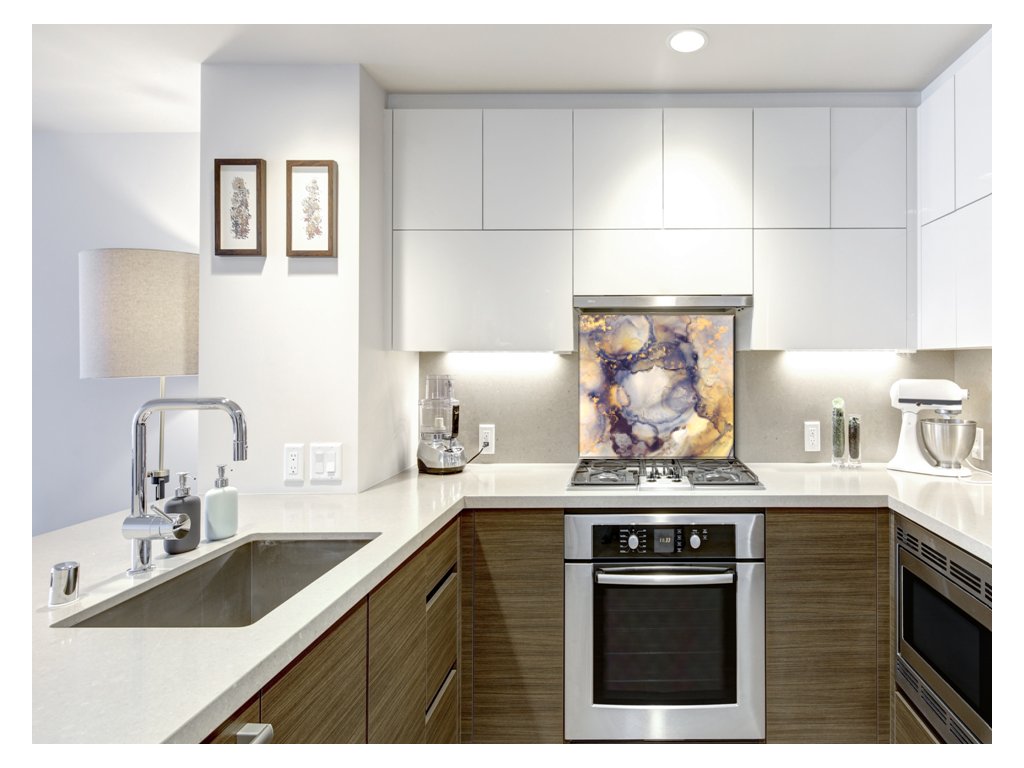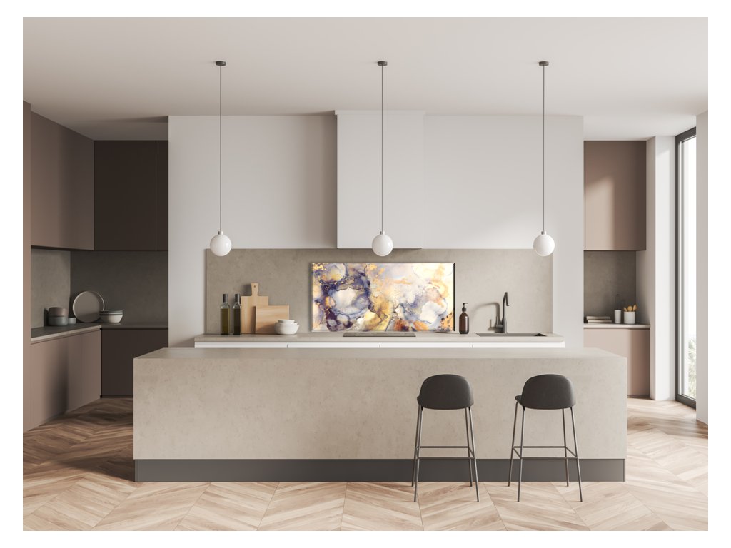 - použití: skleněný panel do kuchyně je vhodný za varné centrum elektrické, indukci i plynové. V případě umístění za plynovou varnou desku doporučujeme minimální vzdálenost 15 cm od hořáků, popř. nepouštět naplno a udržovat plamen pod hrncem hlavně u velkého hořáku. V případě nedodržení instrukcí, může dojít k poškození potisku či barvy výrobku