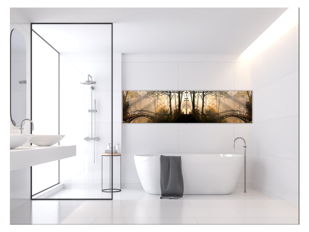Sklo do kuchyně most v podzimním parku