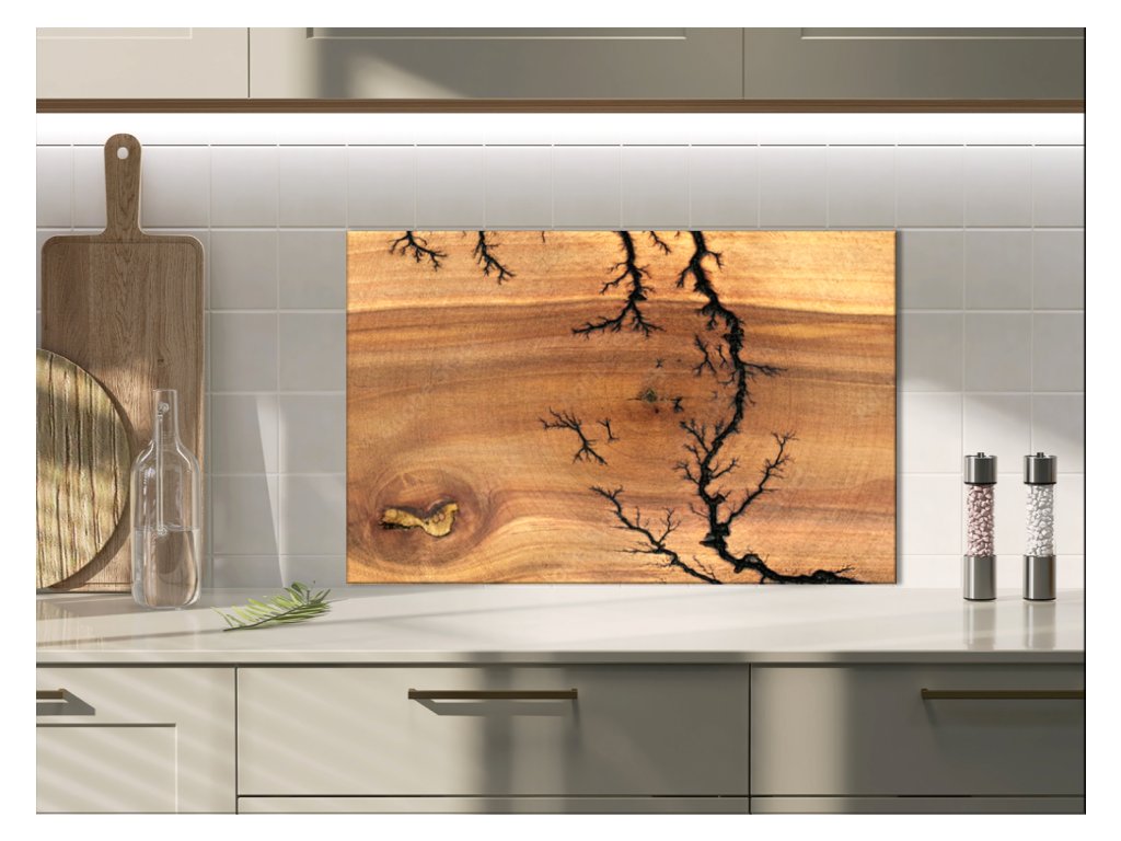 - použití: skleněný panel do kuchyně je vhodný za varné centrum elektrické, indukci i plynové. V případě umístění za plynovou varnou desku doporučujeme minimální vzdálenost 15 cm od hořáků, popř. nepouštět naplno a udržovat plamen pod hrncem hlavně u velkého hořáku. V případě nedodržení instrukcí, může dojít k poškození potisku či barvy výrobku