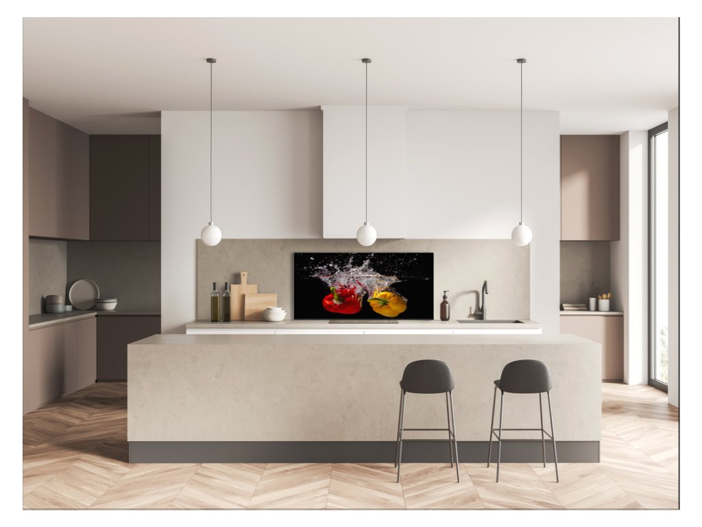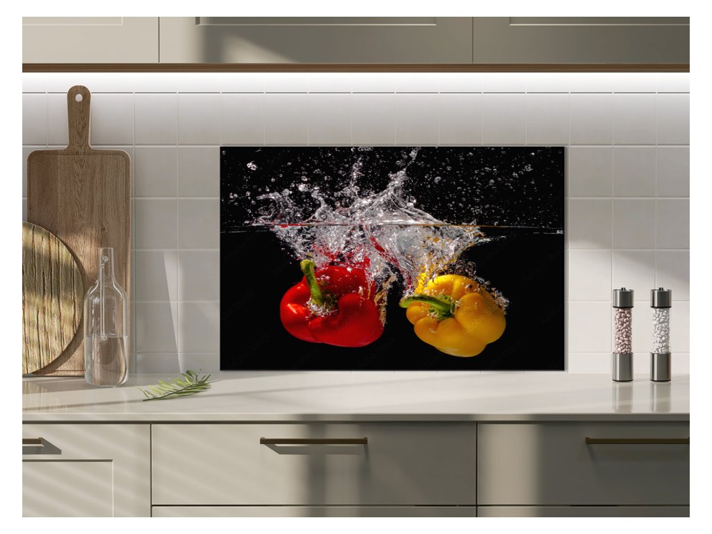- použití: skleněný panel do kuchyně je vhodný za varné centrum elektrické, indukci i plynové. V případě umístění za plynovou varnou desku doporučujeme minimální vzdálenost 15 cm od hořáků, popř. nepouštět naplno a udržovat plamen pod hrncem hlavně u velkého hořáku. V případě nedodržení instrukcí, může dojít k poškození potisku či barvy výrobku