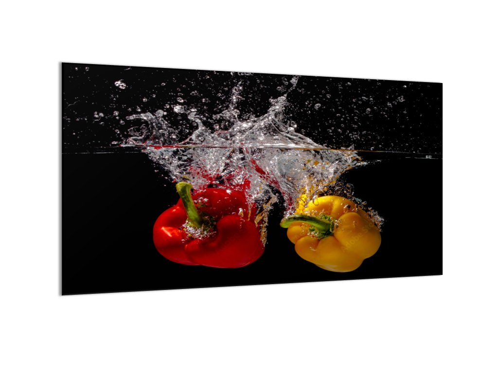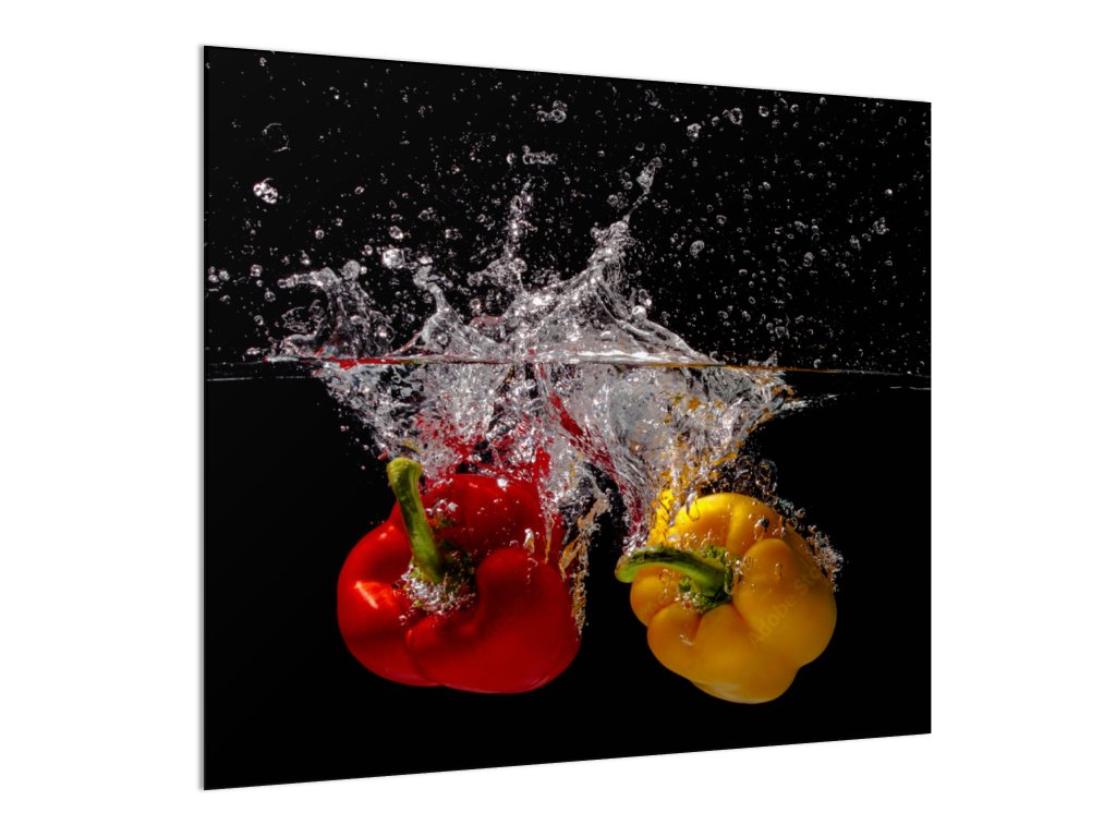 Sklo do kuchyně papriky ve vodě na černém pozadí