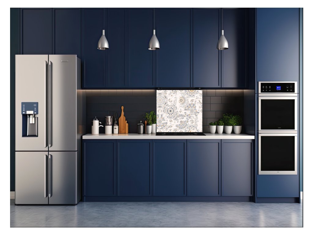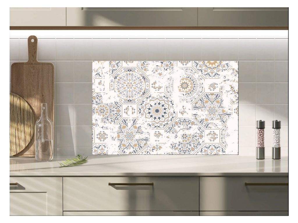 - použití: skleněný panel do kuchyně je vhodný za varné centrum elektrické, indukci i plynové. V případě umístění za plynovou varnou desku doporučujeme minimální vzdálenost 15 cm od hořáků, popř. nepouštět naplno a udržovat plamen pod hrncem hlavně u velkého hořáku. V případě nedodržení instrukcí, může dojít k poškození potisku či barvy výrobku