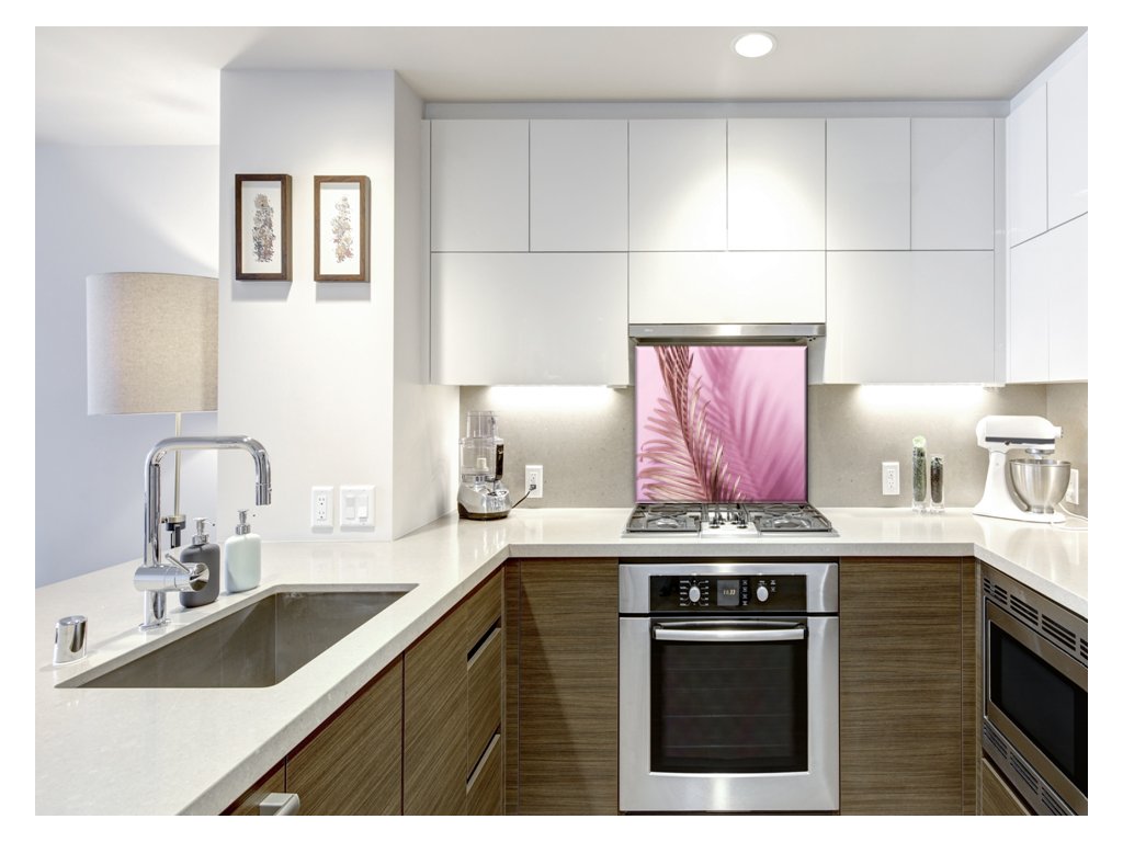 - použití: skleněný panel do kuchyně je vhodný za varné centrum elektrické, indukci i plynové. V případě umístění za plynovou varnou desku doporučujeme minimální vzdálenost 15 cm od hořáků, popř. nepouštět naplno a udržovat plamen pod hrncem hlavně u velkého hořáku. V případě nedodržení instrukcí, může dojít k poškození potisku či barvy výrobku