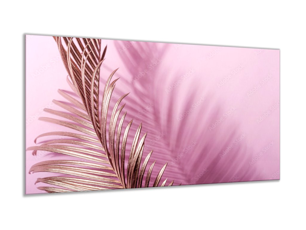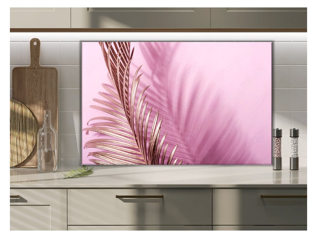 Sklo do kuchyně růžový podklad a zlatý palmový list