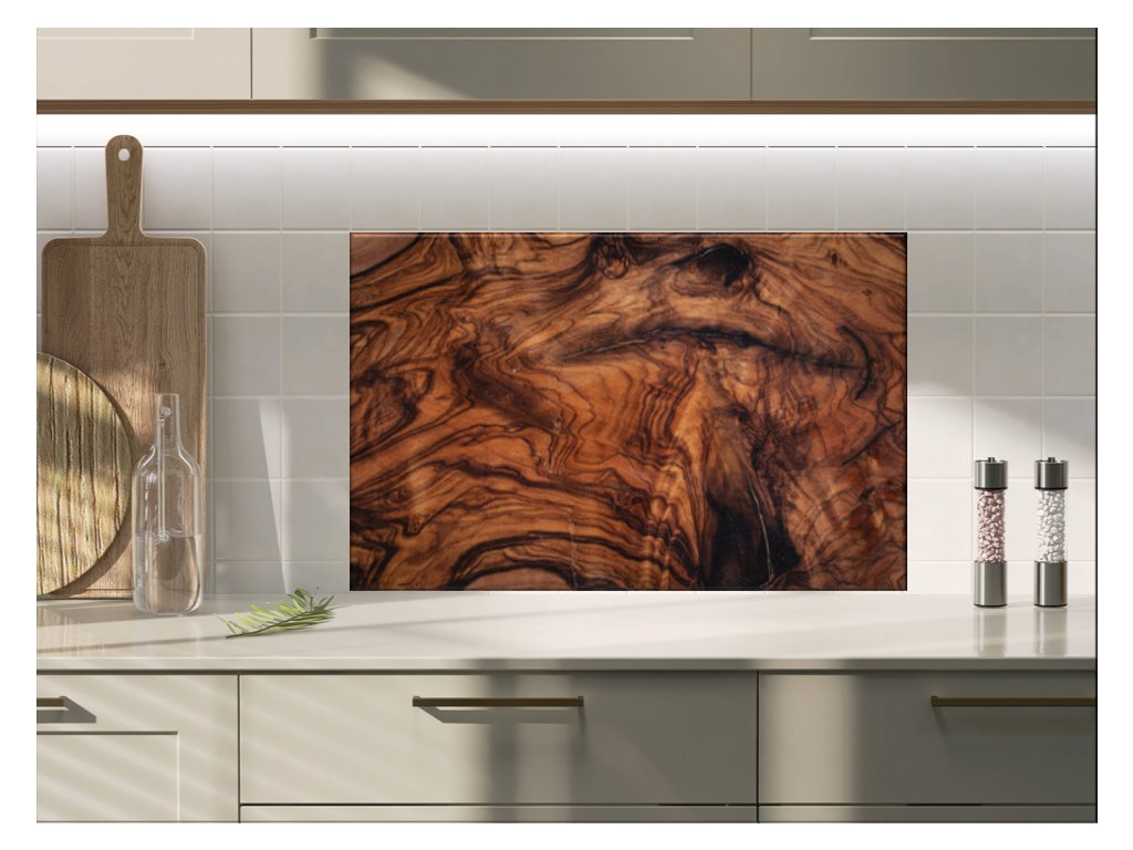 - použití: skleněný panel do kuchyně je vhodný za varné centrum elektrické, indukci i plynové. V případě umístění za plynovou varnou desku doporučujeme minimální vzdálenost 15 cm od hořáků, popř. nepouštět naplno a udržovat plamen pod hrncem hlavně u velkého hořáku. V případě nedodržení instrukcí, může dojít k poškození potisku či barvy výrobku