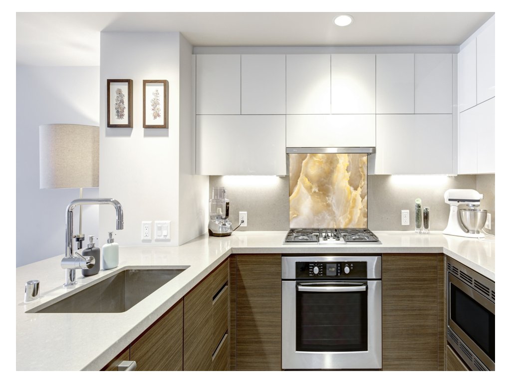 - použití: skleněný panel do kuchyně je vhodný za varné centrum elektrické, indukci i plynové. V případě umístění za plynovou varnou desku doporučujeme minimální vzdálenost 15 cm od hořáků, popř. nepouštět naplno a udržovat plamen pod hrncem hlavně u velkého hořáku. V případě nedodržení instrukcí, může dojít k poškození potisku či barvy výrobku