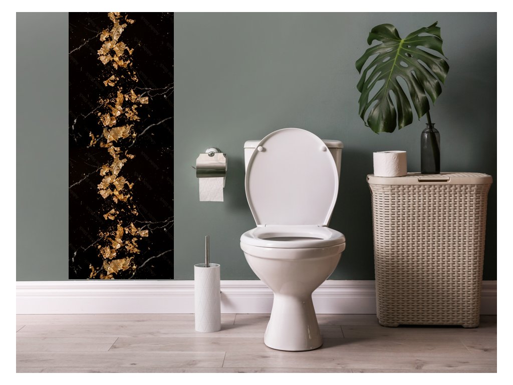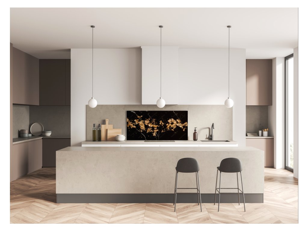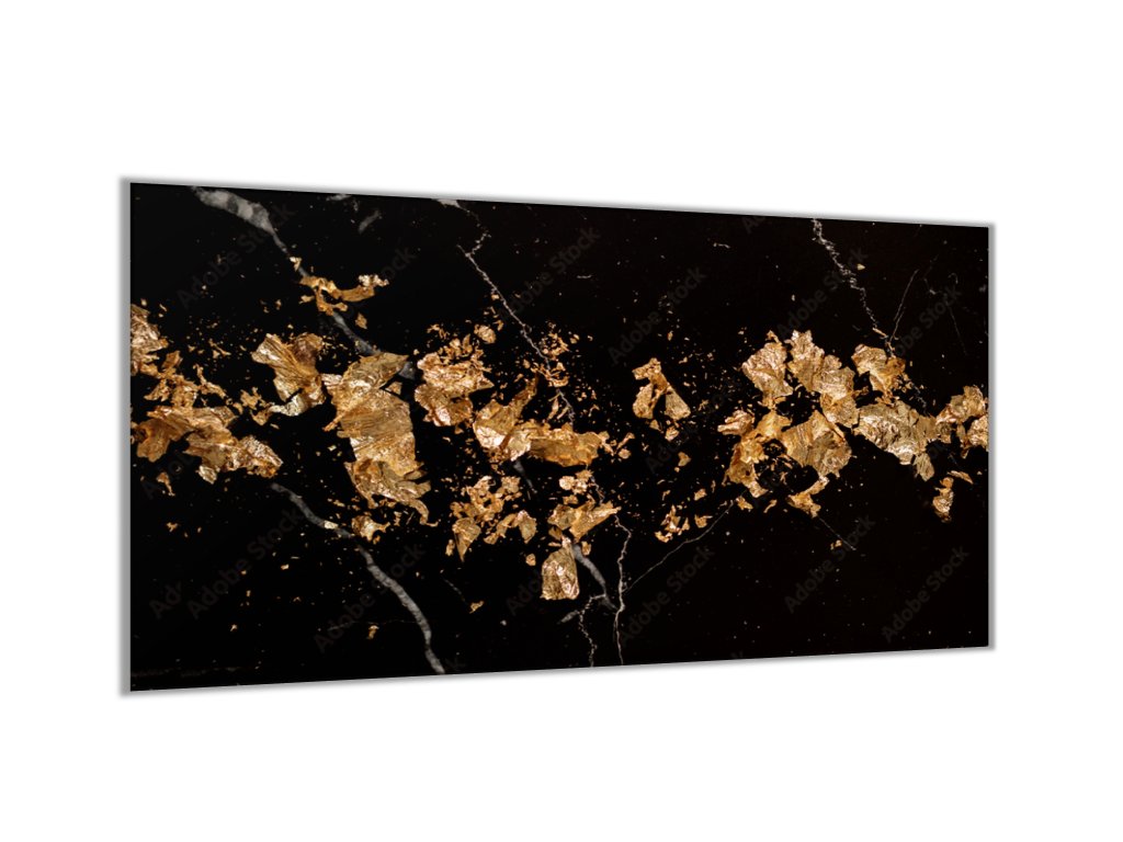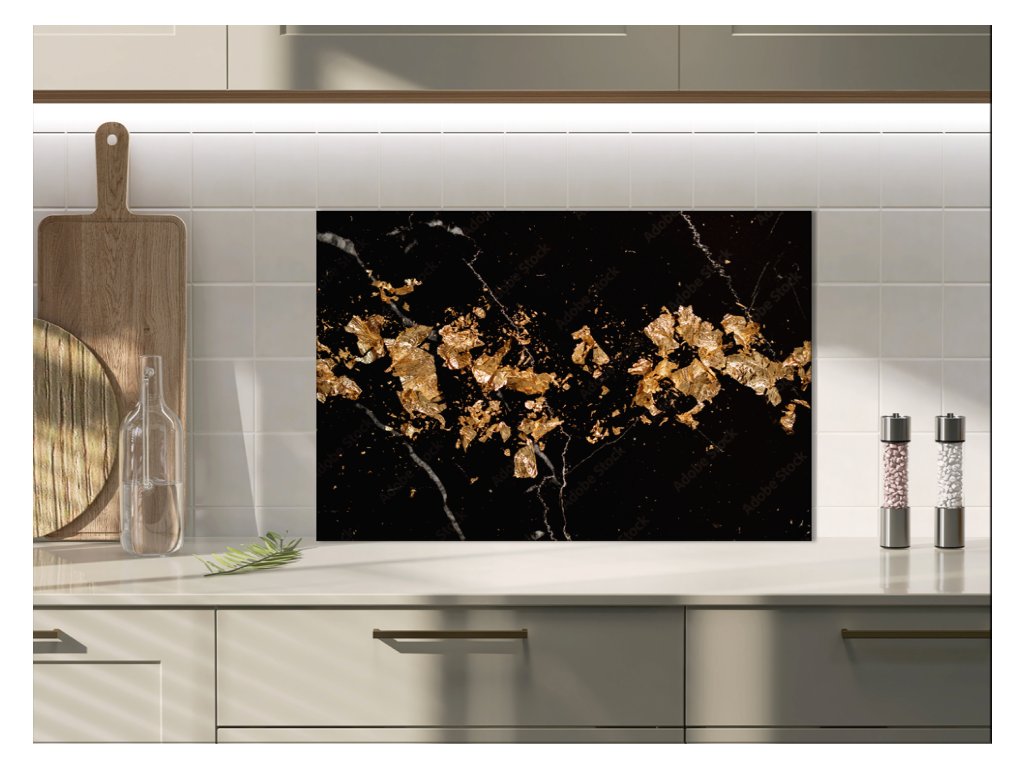 Sklo do kuchyně zlaté okvětní lístky černý mramor